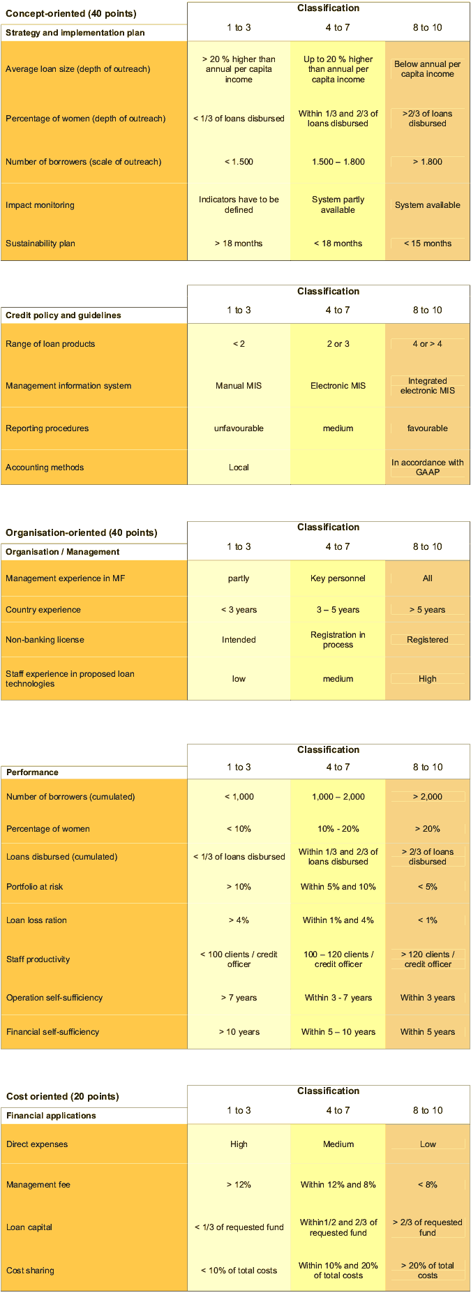 The final selection of the intermediary is made after a thorough assessment of the submitted proposals according to defined criteria. Examples of criteria and their assigned weight in assessing proposals are shown in table 2.