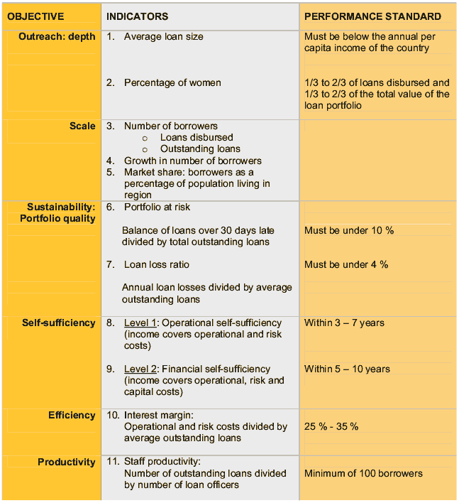 Effective supervision and monitoring of credit programme management should be based on the performance standards outlined in table 3. The intermediary should be obliged to submit regular reports. When performance standards are not met, the causes should be immediately determined and suitable remedial action undertaken .
