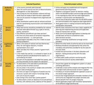 - Very weak state structures even bring limitations that cannot be overcome in the three-year implementation cycle of post conflict/ post disaster projects. Capacity development to overcome root causes of conflict or societal changes will take far longer. The risk here is that too high expectations will be levelled on projects that cannot be realistically met.