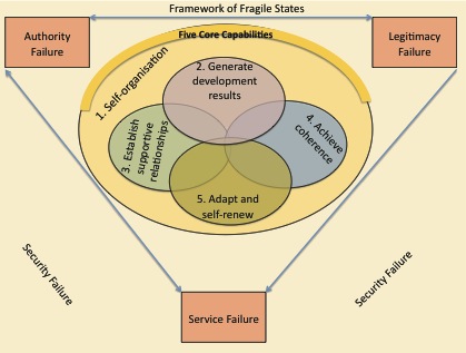 Figure 3 depicts the four dimensions of failure that are commonly associated with fragile states with the five core components of capacity development. The lack of or limited capacity at the societal level is an important driver of fragility in a country. In many countries the unequal distribution of the capacities and capabilities is a further factor, with some groups in society being affected by exclusion from the social and economic development of the country.